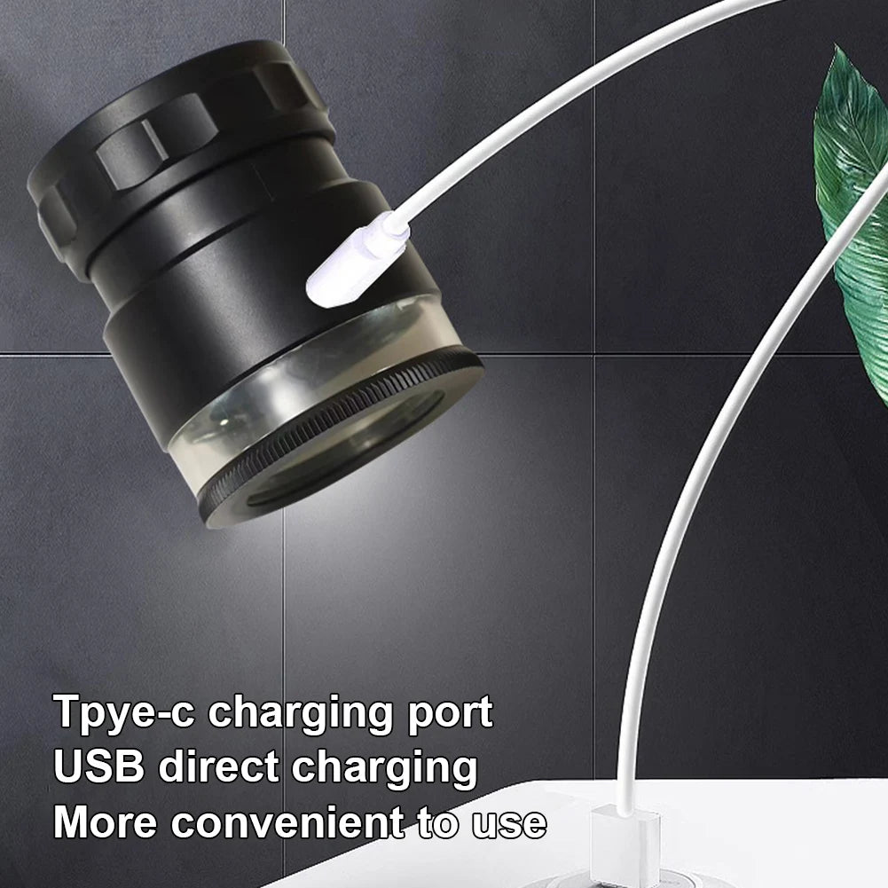 1. High-Definition Optics: The stand measuring magnifier scale loupe features coated lenses with scales, providing high-definition imaging for precise measurements and detailed observations. 2. Glare Reduction: Our scale magnifying glass is equipped with a reflective light source that filters out glare, preventing visual interference and ensuring clearer, more transparent imaging. 3. Versatile Usage: The cylinder magnifier is perfect for a wide range of applications, including examining jewelry, coins, and other small objects, making it an essential tool for collectors and hobbyists. 4. LED Auxiliary Lighting: This jewelers magnifying glass comes with 4 white LEDs and 4 purple LEDs for auxiliary lighting, offering enhanced visibility and clarity, especially in low-light conditions. 5. Auto-Focus and Fine-Tuning: The scale magnifying glass features auto-focus with fine-tuning capabilities. Place it flat on the object for immediate clarity, and use the eyepiece for adjustments if the surface is uneven.