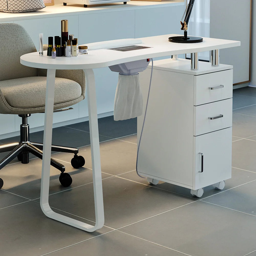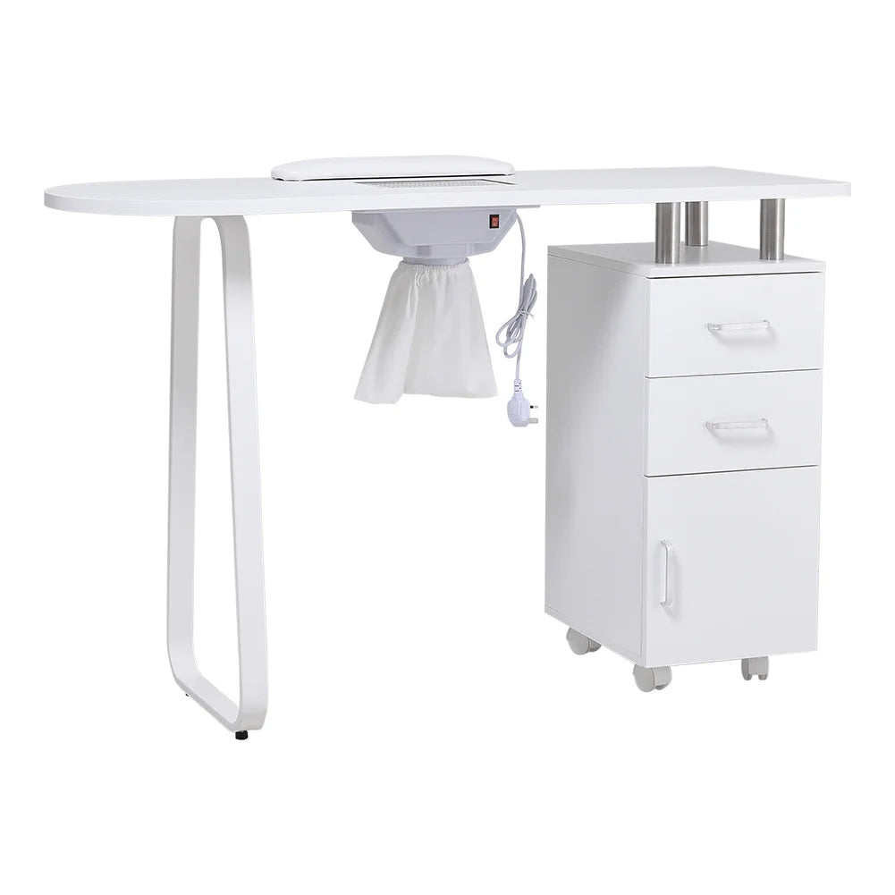 Features *The storage compartments keep items easily accessible for efficient nail treatments *Lockable castors ensure stability and easy maneuverability on various surfaces *High gloss white finish makes for an easy care and modern piece