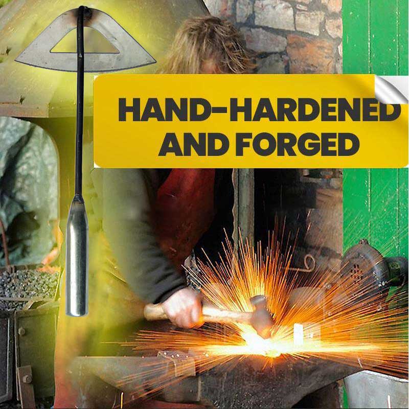 The stainless steel construction of the hoe head makes it strong and robust, capable of withstanding heavy-duty use in challenging gardening conditions. The hardened hollow design adds strength and sharpness to the blade, allowing for efficient cutting and digging through the soil.