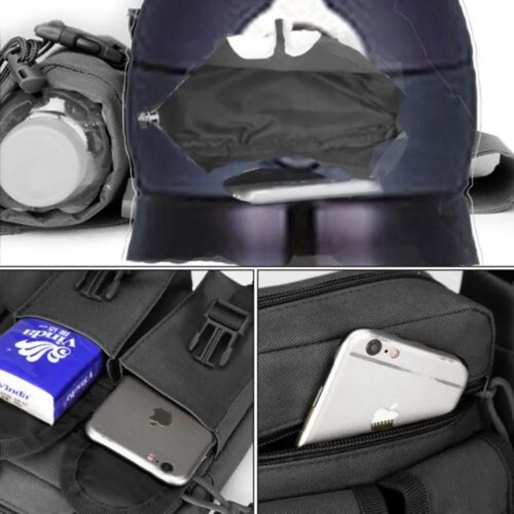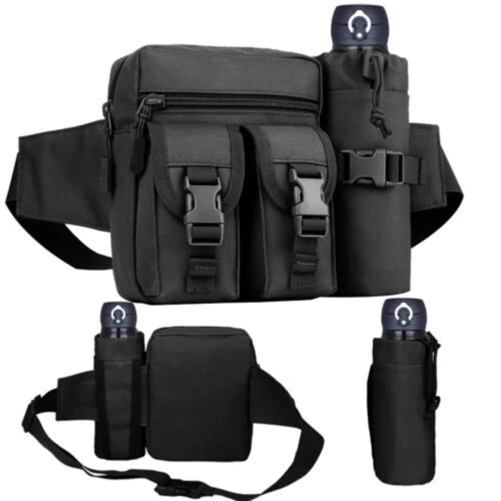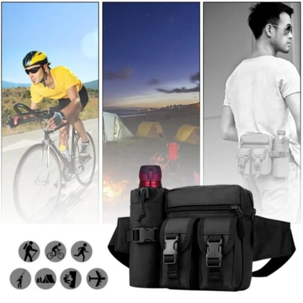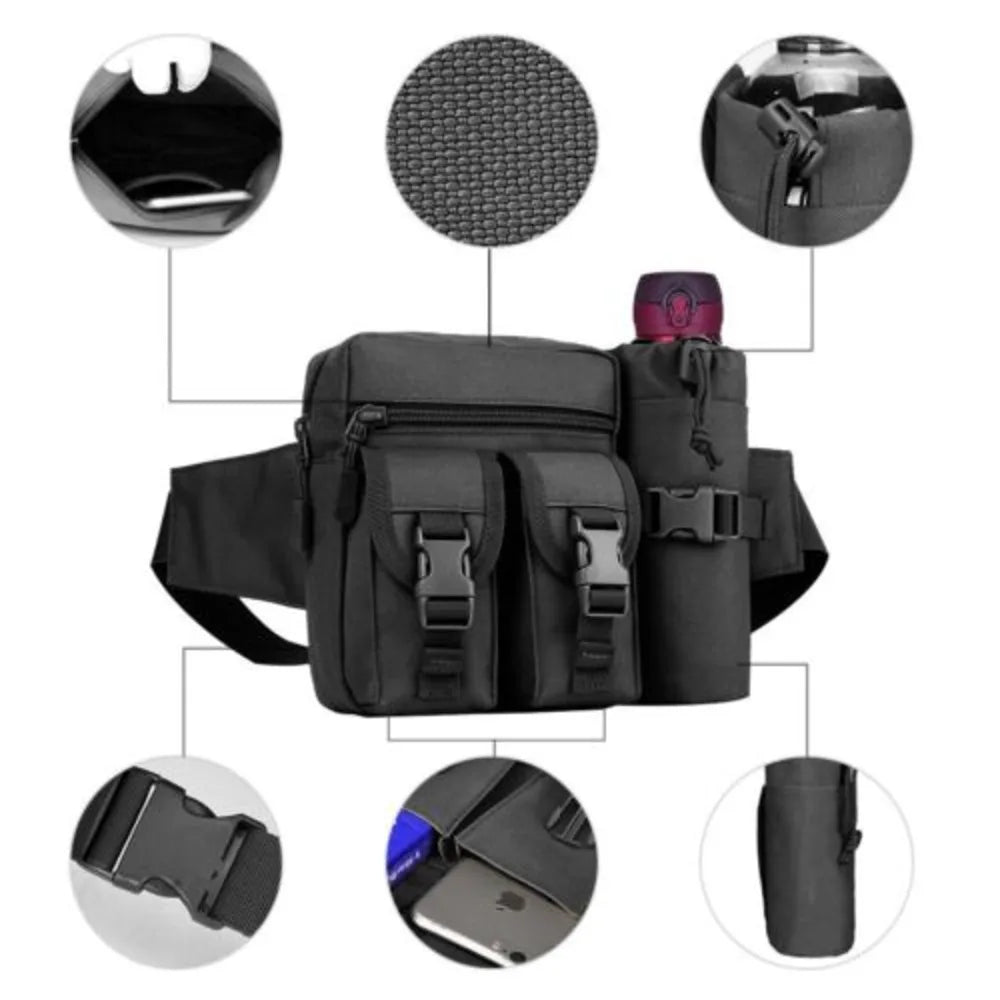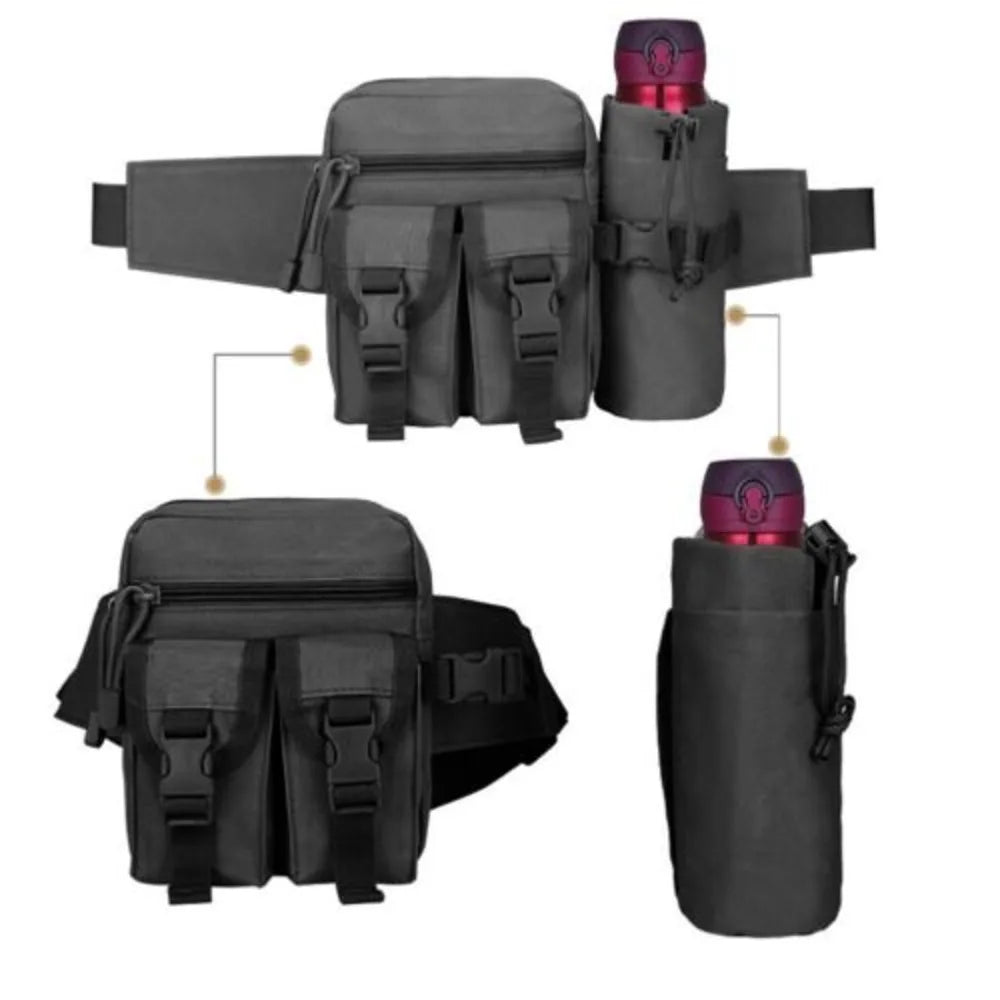 Hands-Free Design: this tactical waist pouch with left pocket, right pocket, top pocket, and water bottle pocket: put many items in it orderly, and you can have your hands free